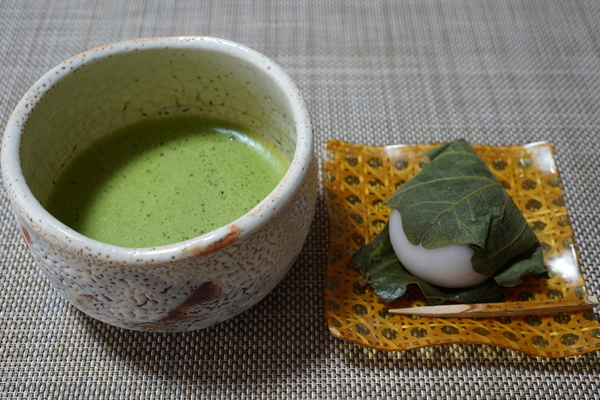 昨日,映画を見に行った帰りに,かしわ餅とイチゴ大福を買った。息子の分もそれぞれ1個ずつ買ってあったが,結局,今日も食べられそうにない。女房と二人で,おやつに食べた。女房がイチゴ大福で私がかしわ餅。女房に抹茶をたててもらった。