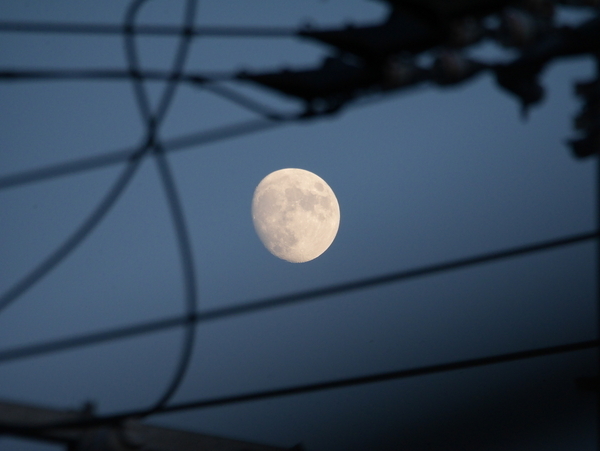 昨日と今日,ベランダから月を写真に撮った。ちょうど電線の間に見えた月。