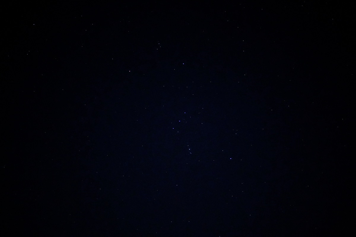 2023-12-03 オリオン座 写真 オリオン座がきれいに見えたので,ベランダから写真を撮ってみた。 α7C+FE 40mm F2.5 G で,ISOを16000にして,絞り開放F2.5,シャッター速度は15分の1,手持ち撮影。GIMPでレベル補正をした。 これまでは三脚を使い,10秒ほどの露出で撮っていたが,今回は感度をかなり上げてチャレンジ。手持ちでも何とか撮影が可能だとわかった。 なお,このページの写真は,クリックすると拡大するようにしてみた。今後は,このような写真の載せ方に変えていきたいと思っている。